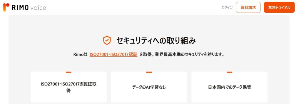 | Rimo Voice | なし(有料プラン) | 国産・ISO認証取得。規約の「精度向上目的解析」は要確認 |