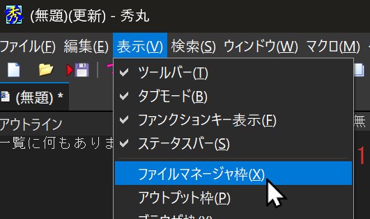 秀丸エディタにはVer8.00以降、ファイルマネージャ枠という機能が搭載されています。